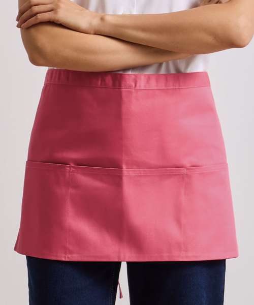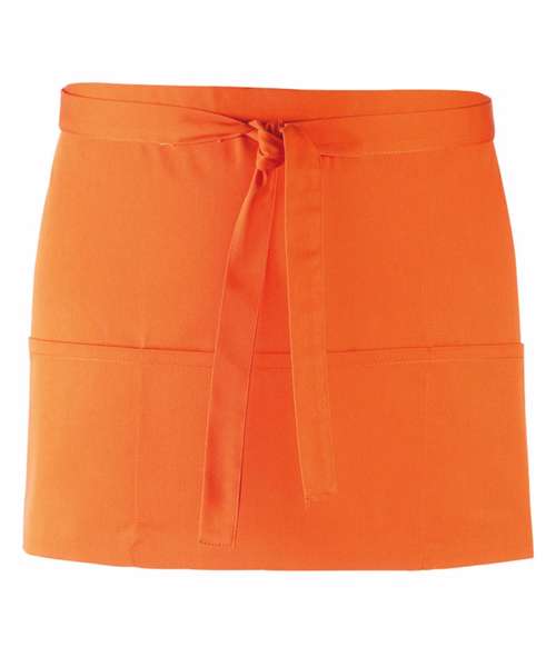 A popular style of apron seen in many bars and restaurants, this short waist apron has three open pockets. From the Premier 'Colours' collection. The pockets are great for carrying payments terminals and tablet devices.