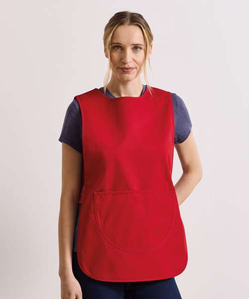 A traditional over-the-head tabard available in vibrant colours. This coverall fastens securely at the side with adjustable studs and offers great protection against spillages. In the centre is a large patch pocket with a bias trim edge, useful for carrying accessories.