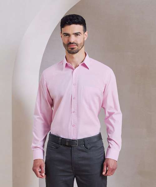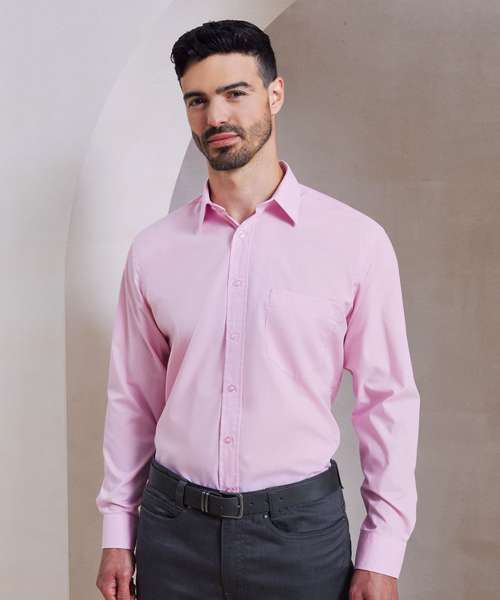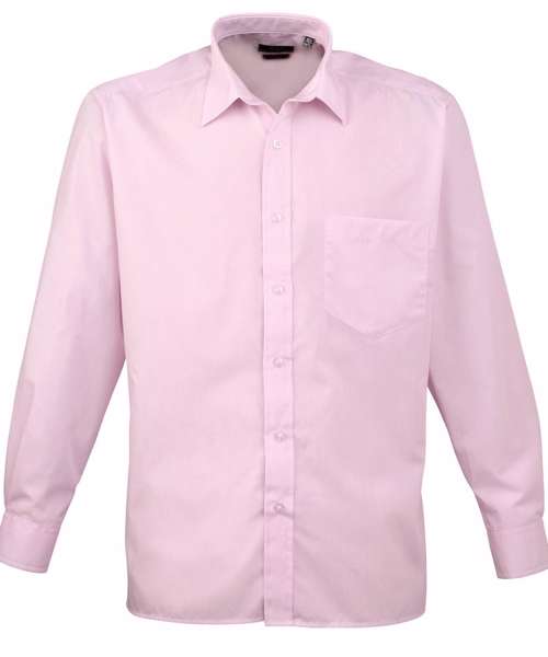 A men’s long sleeved classic fit Poplin shirt available in 27 colours from the Premier 'Colours Collection.' This classic work shirt has a stiffened formal cut collar which accommodates a ties perfectly. The left breast pocket and self-fabric buttons down the placket and cuffs makes for a smart and stylish everyday shirt which carries Premier's easy care label.