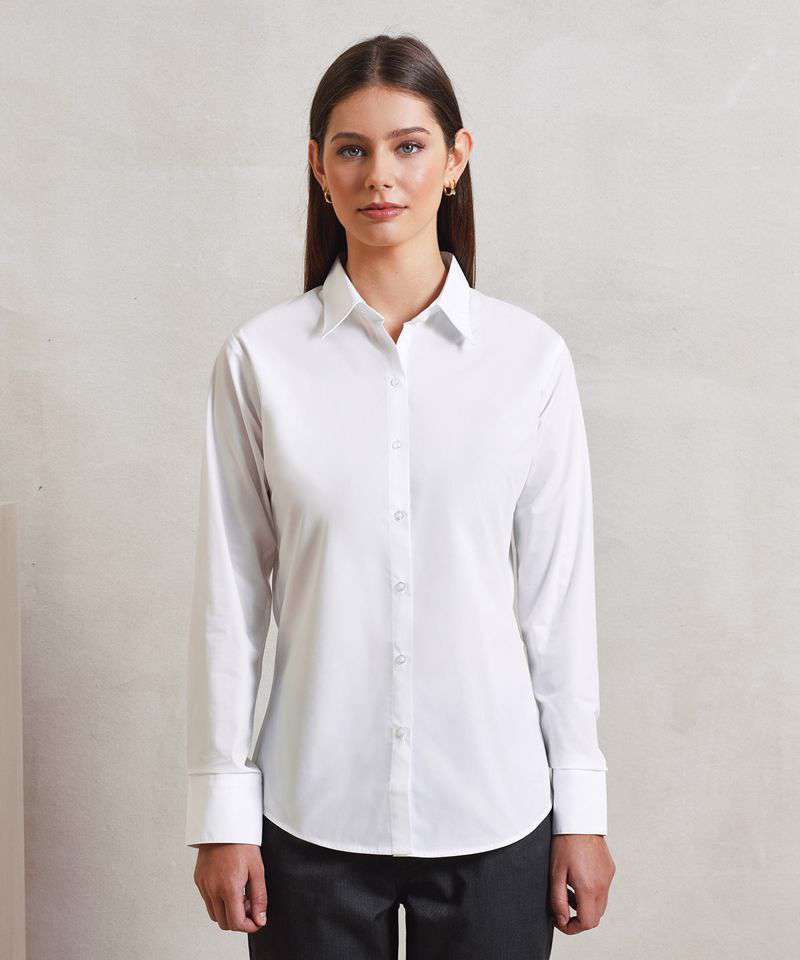 Premier’s long sleeved Supreme Poplin Blouse offers a flattering feminine fit with soft collar detail with bust and back darts giving this blouse a semi fitted appearance. The long sleeves are fastened neatly with a double button cuff. Offering a heavier weight material for durability and finished with a rounded hem.
