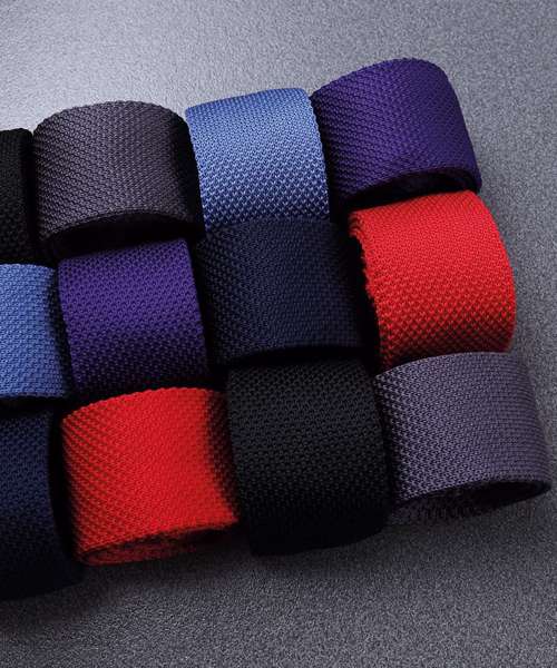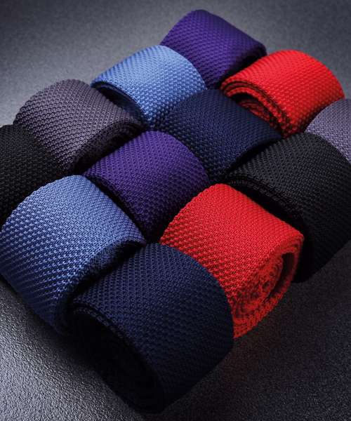 A super trendy tie suitable for work and play! Boasting an extra slim width of just 5cm with a squared off blade finished with a fine-knit stitching. This tie is knitted together with two coloured yarns for a slight contrast effect.