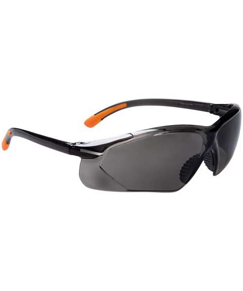 This safety spectacle provides the wide wraparound coverage required for full protection. Stylish rubber tip temples and a mono-lens make it possible to fit these glasses to variety of face types.