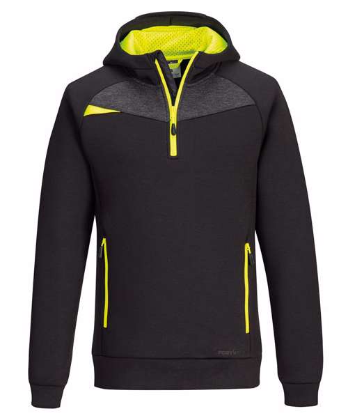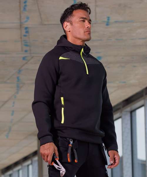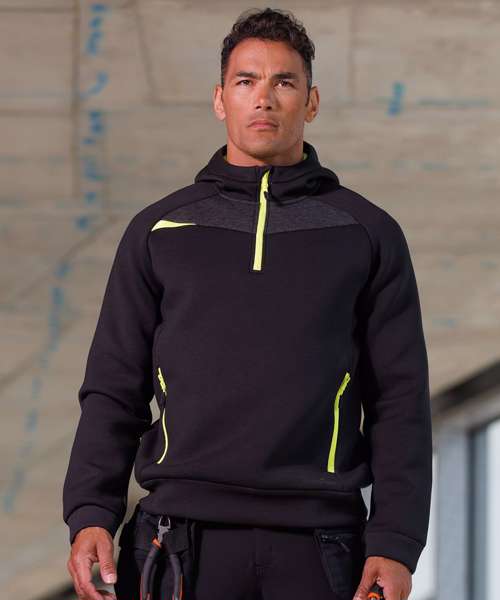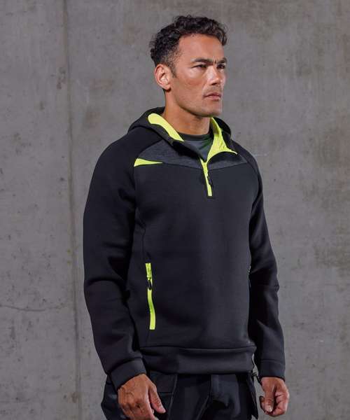 The DX4 ¼-zip hoodie is made from polyester with elastane, giving it four-way stretch that’s ideal for working. The perfect weight of fabric to keep you warm in winter while still feeling fresh.