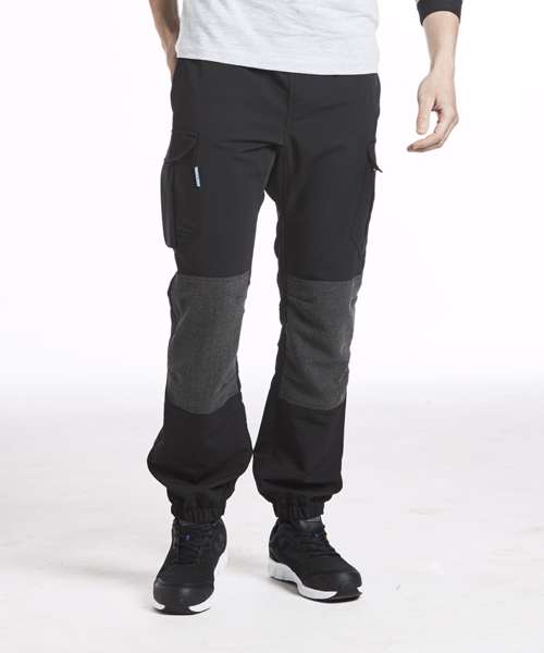 Cargo pockets on side leg. Double-layer knee protection. D-ring. 5-pockets. Bar tacked at all stress points. 4-way stretch fabric. Registered Community Design. Contemporary design with clean cut lines. Crotch gusset. Pre-bent knees. Fully ribbed waistband with drawstring . Slim fit cuffed pants. Easy grip pullers.