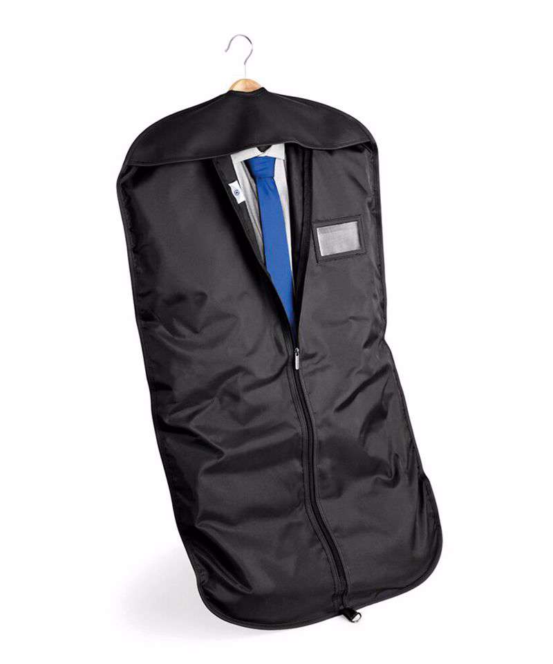 Hanging loop for folding. Identification window. Full length zip closure.