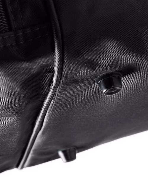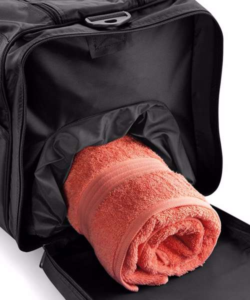 Detachable adjustable shoulder strap with pad. Wet pocket. Racquet pocket. Zippered end pockets. Internal baseboard, Protective base feet. Padded hand grip.