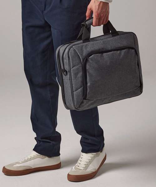 Triple compartment design. Laptop compatible up to 17". Padded laptop compartment. Document section. Detachable adjustable shoulder strap with pad. Zippered front pocket. Organiser section. USB memory stick loops. Wheelie bag strap. Padded handle. iPad mini/Tablet compatible.