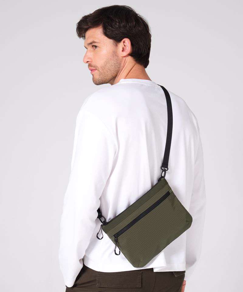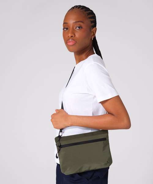 Zipped main compartment. Zipped front pocket. Internal key hook. Internal mesh zipped pocket.Detachable and adjustable shoulder strap. Easy grab loop zip pull. TearAway label for ease of rebranding. Contains 100% GRS-certified recycled nylon, certified by Control Union CU811033.