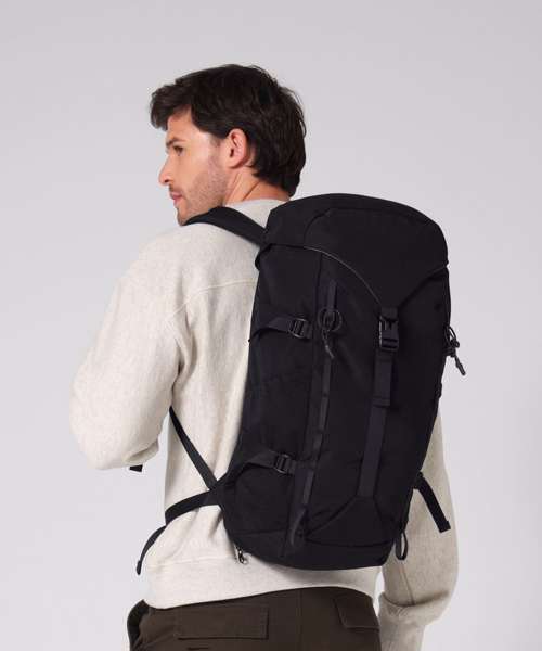 The Active outdoor 30 litre backpack offers capacious, organised storage with technical outdoor styling, making it ideal for longer days and bigger adventures. Crafted from Cordura® polyester with a PFAS-free water-repellent coating, it combines durability with smart design. A padded laptop sleeve, hydration bladder compatibility and trekking pole attachments add versatility, while compression straps, ergonomic padding and an integrated rain cover provide reliable support on more demanding journeys.