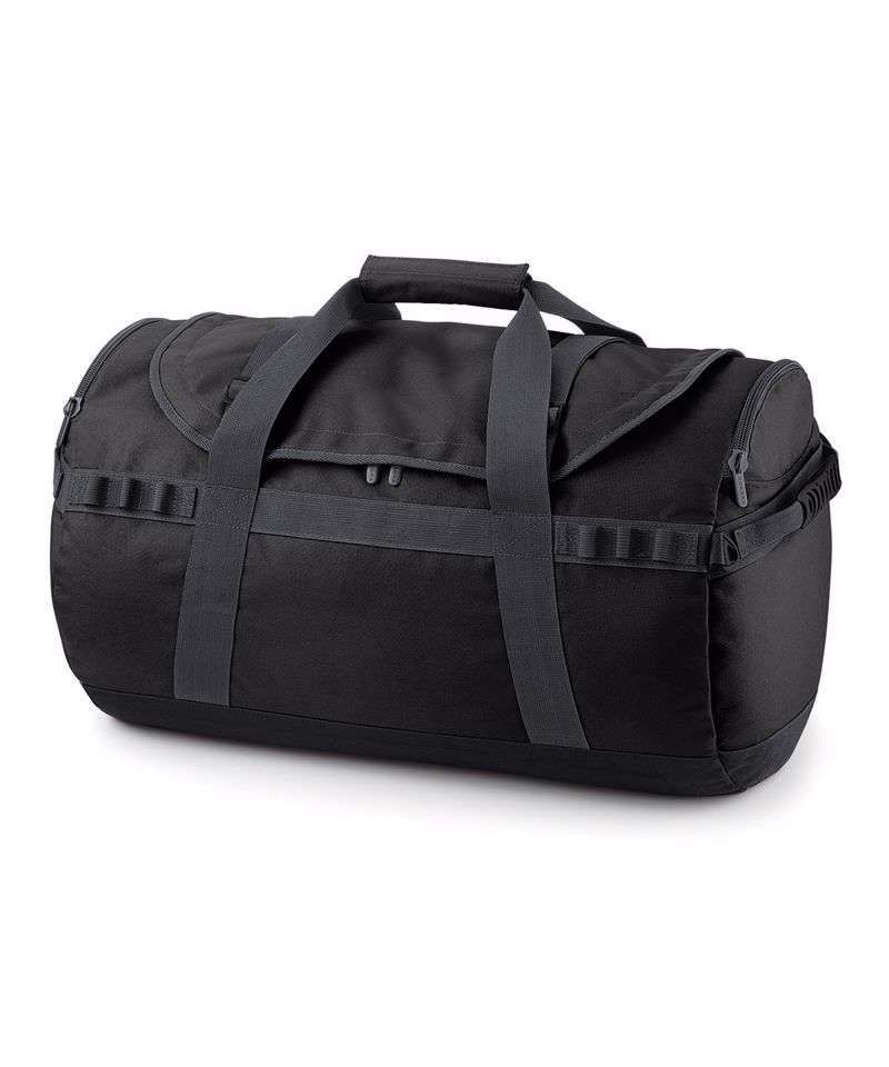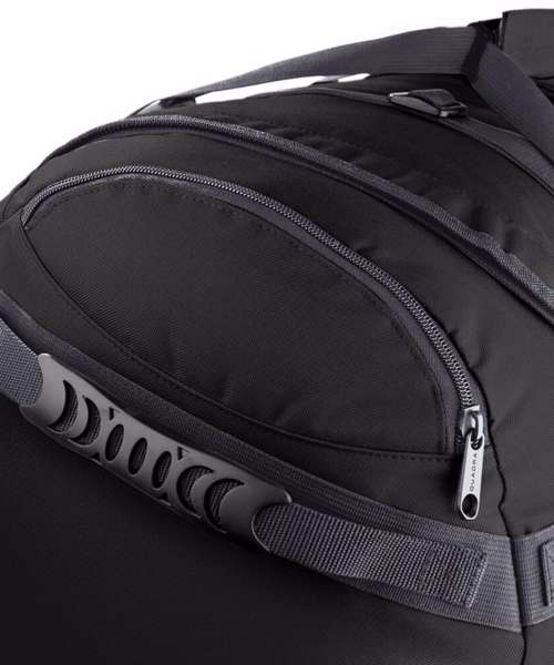 Heavy duty construction. Foldaway backpack shoulder straps. Grab handles. Compression straps. Internal mesh pockets. Locking main zip. Padded hand grip. Reach certified.