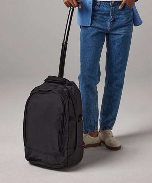 Aircraft cabin compatible. Zippered front pocket, organiser section, large main compartment. Compressions straps. Retractable mono tube locking tow handle. Pack away shoulder straps. Durable integrated skate wheels. Neoprene padded grab handle. Name card holder.