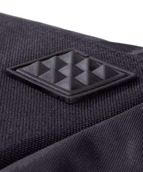 Compact size to fit most lockers, with detachable adjustable shoulder strap and pad. End pockets, one with mesh ventilation panel. Protective base feet. Internal baseboard. Padded hand grip.