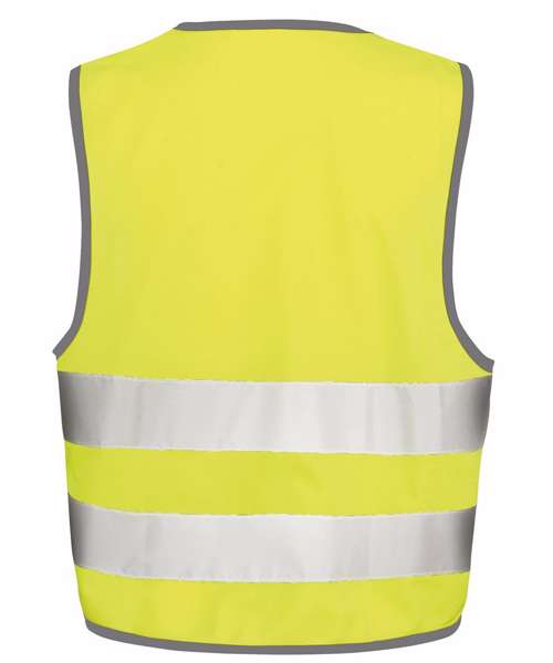 Generous in size, allowing it to be worn as an overgarment. Grey bound edges. 50mm sewn-on safety tapes. Tear release fastening. Full shoulder and chest space for logo. Note: these garments should be worn fastened and kept clean to maintain effectiveness. EN1150:1999 Specification. Decorating methods: Embroidery, transfer print. Decorators access point: Open.