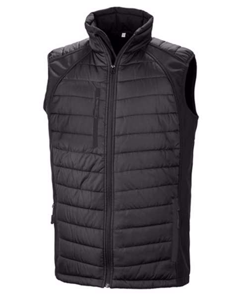 On-trend padded plus softshell combination. Supersoft, lightweight and warm. Ready to brand. Quiet to wear. Contrast colour pocket zips. Full front zip with chin guard. Stand-up padded collar. Padded body. Soft bound armhole. Black zip pulls. Hangtag.