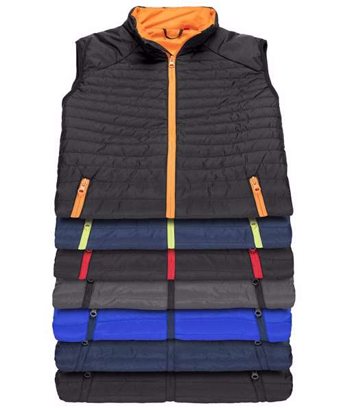 Soft bound elasticated armhole and hem. Zip pockets. Contrast colour lining and detail. Hangtag. Full-zip with chin guard. Dupont™ Sorona® insulative filling. Easy pack with excellent recovery. High heat retention. Ultra lightweight. Ready to brand - tag free.