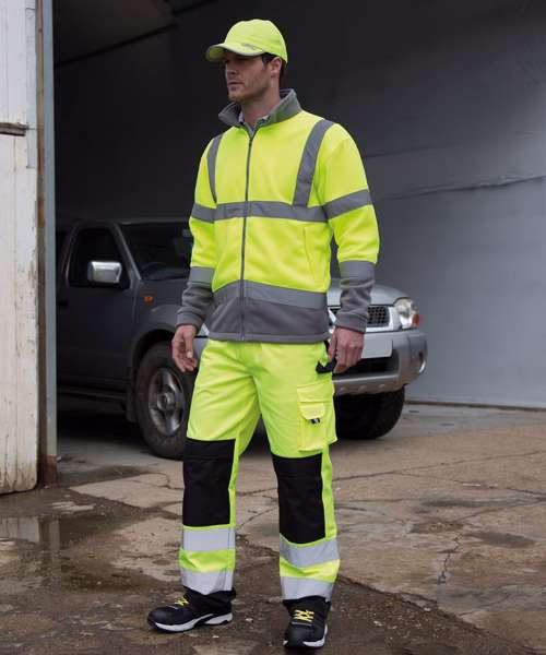 Functionality and high visibility performance are delivered without compromise in these tough and rugged safety cargo trousers. Multiple pockets, bar tacked stress points and hammer loop bring the performance whilst elasticated waistband, knee pad pockets and reflective leg bands bring the comfort and safety. Everything you expect and more from an EN20471 Class 2 safety trouser.