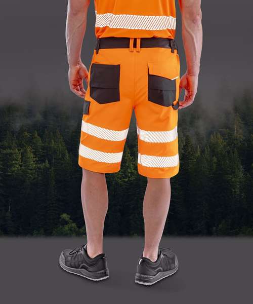 Supermely comfortable, smart, highly visible safety-at-work shorts with a handsome, slim silhouette and multiple pockets. Ideal for durability and all-day warm-weather wear.