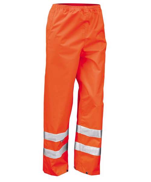 These generously sized Hi-Viz over trousers offer waterproof and wind proof protection whilst adding to your overall visibility. With taped seams, elasticated waist and stud closing ankle adjusters they are the perfect partner to your chosen RESULT Hi-Viz jackets and vests.