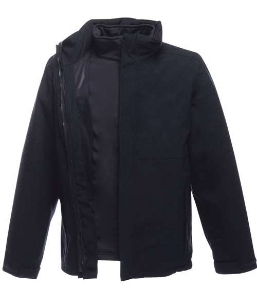 Waterproof and breathable Isotex 10000. 100% polyester stretch fabric. Durable water repellent finish. Part mesh, part polyester taffeta lining. Taped seams. Softshell Inner. Warm backed woven stretch softshell fabric. Concealed hood with adjusters. 2 zipped lower pockets and 1 zipped chest pocket. Double stormflap with hook and loop fastening. Adjustable cuffs. Adjustable shockcord hem. Concealed zip entrance in lining for embroidery access. Softshell Inner. 2 zipped lower pockets.