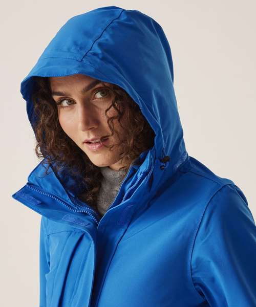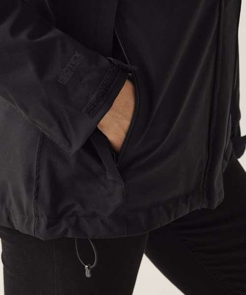 Waterproof and breathable Isotex 10000. 100% polyester stretch fabric. Durable water repellent finish. Part mesh, part polyester taffeta lining. Taped seams. Softshell Inner. Warm backed woven stretch softshell fabric. Concealed hood with adjusters. 2 zipped lower pockets and 1 zipped chest pocket. Double stormfl ap with hook and loop fastening. Adjustable cuffs. Adjustable shockcord hem. Concealed zip entrance in lining for embroidery access. Softshell Inner. 2 zipped lower pockets. Shaped fit (women’s only).
