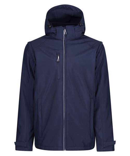 Warm-backed, woven, waterproof and breathable. Softshell XPT fabric 3-layer. Wind-resistant membrane fabric 220 series anti-pill Symmetry fleece. Detachable zip-off sleeves.