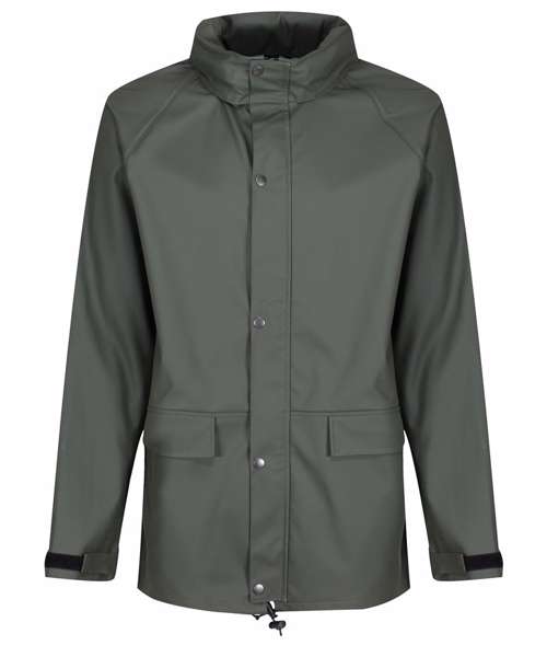Highly breathable waterproof and windproof PU-coated fabric. Comfortable and lightweight tricot knit backing. Packaway hood with adjusters and studded stormflap. Adjustable cuffs and hem. Reach certified. Ethical Trading Initiative certified.