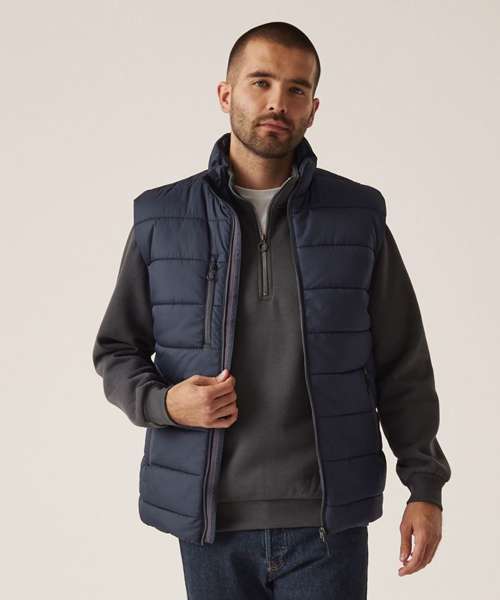 The men’s Navigate thermal bodywarmer from Regatta Professional provides the perfect balance of style and protection. It’s padded with Warmloft insulation to see off the cold and features hard-wearing ripstop fabric to withstand wear and tear. Finished with multiple pockets.