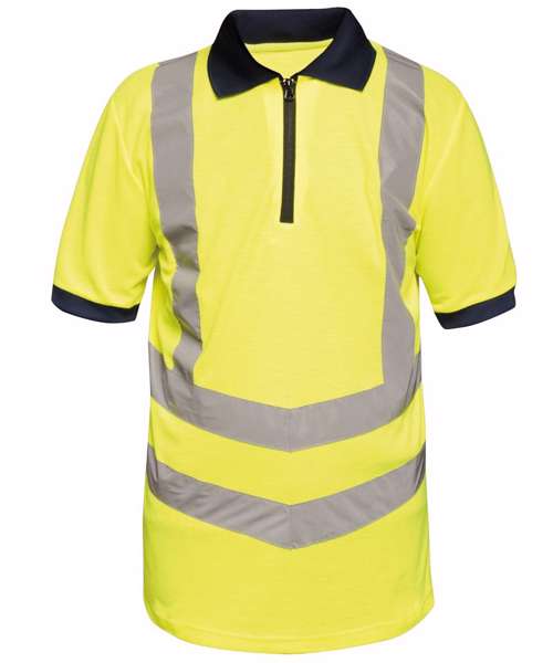 100% quick-dry polyester piqué fabric. Conforms to EN20471: 2013 +A1: 2016 Class 2 (orange also RIS-3279-TOM). Natural wicking fabric. Ribbed collar with zip neck.