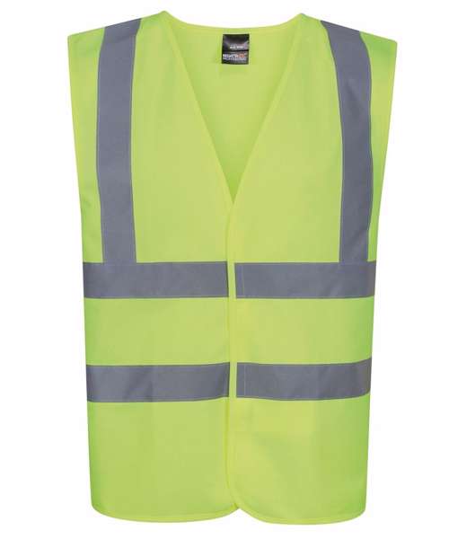 100% polyester tricot mesh fabric. Conforms to EN ISO 20471:2013 +A1:2016 Class 2 (orange also RIS-3279/TOM). Hook and loop fastening.