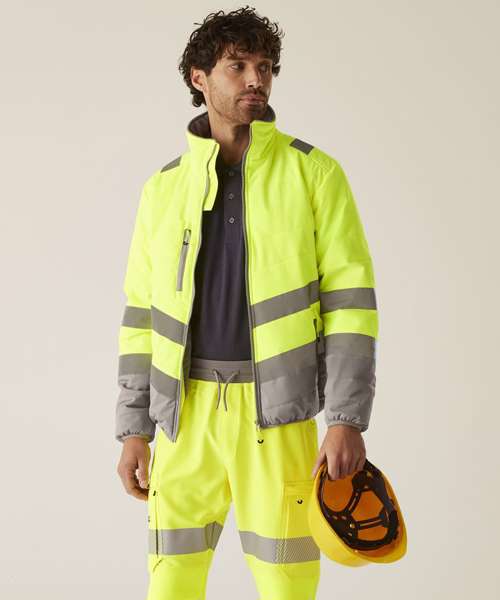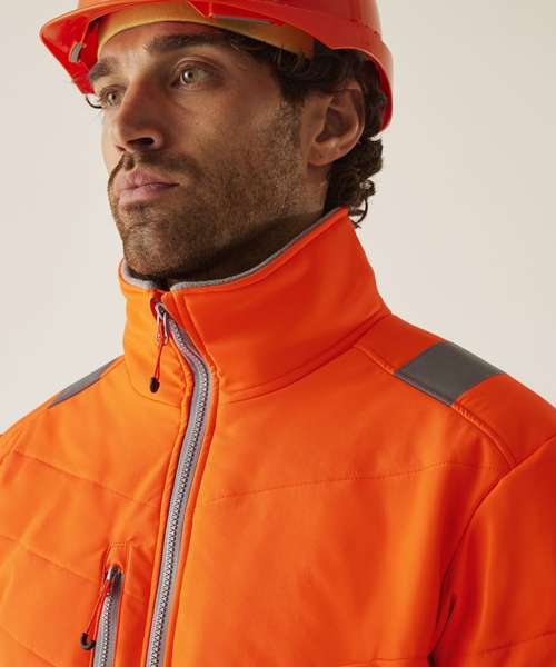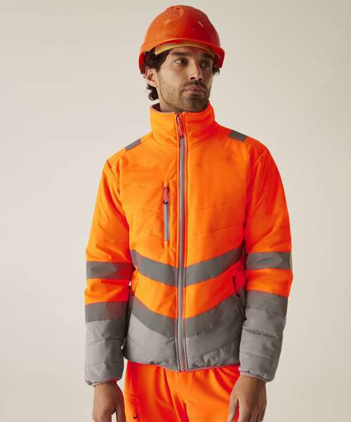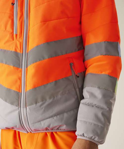 Stay visible and protected in the Hi-vis two-tone thermal jacket from Regatta Professional. Crafted with durable Hydrafort polyester and waterproof to EN ISO 20471 Class 2 standards, it’s built to perform in demanding conditions. Thermoguard insulation adds dependable warmth, while angled ID reflection chevrons improve visibility in low light.