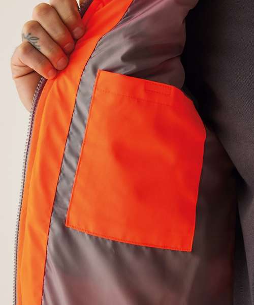 Lightweight four-way stretch outer fabric with durable water-repellent finish. Warmloft insulation, 160gsm. Certified to EN ISO 20471:2013+A1:1026 Class 1. One zipped chest pocket and two lower zipped pockets. Internal pocket. Fleece-lined collar. Stretch binding to armholes and hem. Concealed inner zip for embroidery access. Darker contrast panels, ideal for dirty environments.