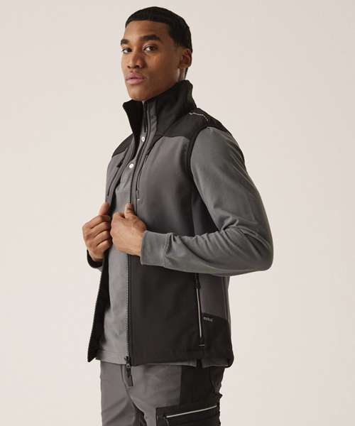 The stretch 3-layer softshell bodywarmer, from Regatta Professional, provides a durable, protective and stylish work layer. It’s constructed from resilient Softshell XPT fabric – so it not only repels water effectively, but also stands up to the rigours of manual labour. Stretch fabric ensures unparalleled freedom of movement, adapting seamlessly to the dynamics of your working day. The bodywarmer is finished with on-trend branding details on the zip pulls.