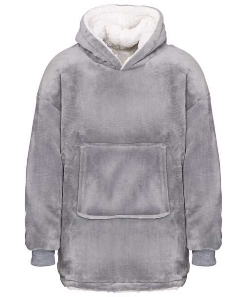 Super-soft microfleece hoodie with snuggly warm sherpa lining. Oversized – one size fits most. Large pocket keeps your hands warm. Reversible – choose your favourite way.