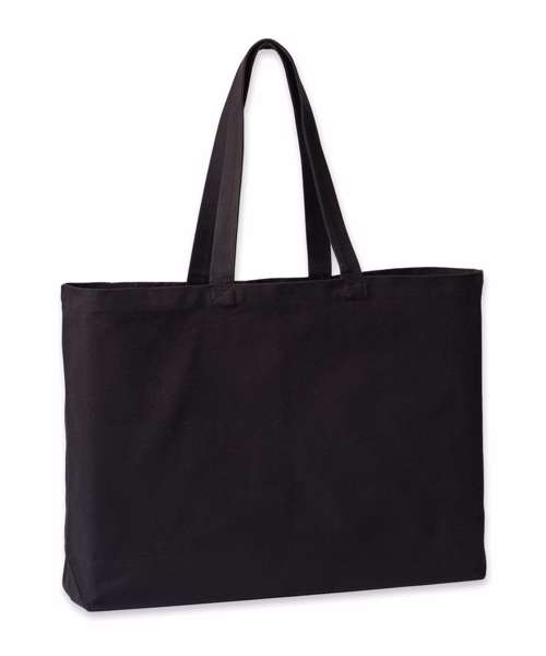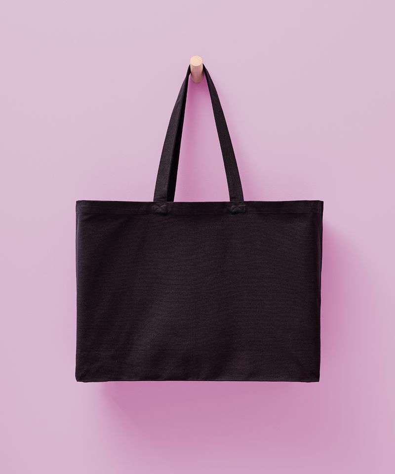 100% Certified recycled cotton, 400gsm. Durable, canvas construction. Extra-large capacity. Self-fabric handles. Can be carried by hand or over the shoulder. Straps: 72cm x 3cm.