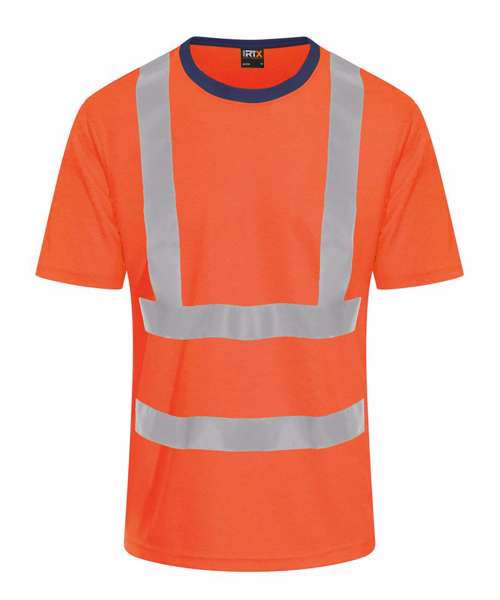 Certified EN ISO 20471:2013+A1:2016. RIS-3279-TOM ISSUE 1:2016 (Orange only). HV Orange/Navy & HV Yellow/Navy - Class 2. Ribbed contrast colour collar. Twin-needle stitching on shoulder. Twin-needle stitching on sleeve and bottom hem. Over shoulder and around body reflective tapes. Around body tape finishes before the side seam for comfort and ease of fit.