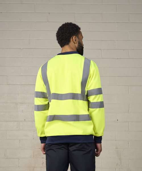 Warm, comfortable and timeless, the high visibility sweatshirt provides level 3 protection. Made from 100% polyester with contrast collar, hem and cuff providing, protection from dirt in those most prone areas, this staple workwear item will see you through any season.