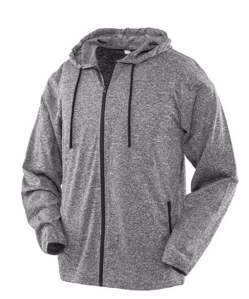 Super stretch lightweight t-shirt jacket hoodi in on-trend printed melange fabric with natural movement and sport cover.