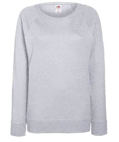 Made from lightweight unbrushed fleece and featuring shaped side seams for a feminine fit, the women's lightweight raglan sweat is perfect for layering, with a 100% cotton face promising perfect printing and embroidery results. Including raglan sleeves, cotton/Lycra® neck, waist and cuff ribs, Fruit’s women's lightweight raglan sweat is available in a wide range of colours.