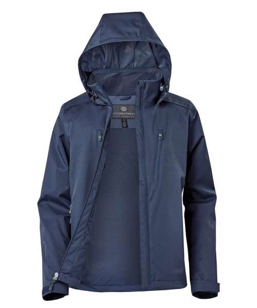 Stormtech 2-layer H2XTREME 10000/10000 Waterproof/breathable outer shell. PFC-free durable water-repellent finish. Fully seam-sealed. Roll-away hood with adjustable drawcord. Brushed tricot-lined collar. Waterproof centre-front zip. Waterproof zipped chest pockets. Waterproof zipped hand pockets with brushed tricot. Articulated sleeves. Adjustable cuffs and hem. Mesh-lined back vent. Contoured seaming. 100% recycled polyester.