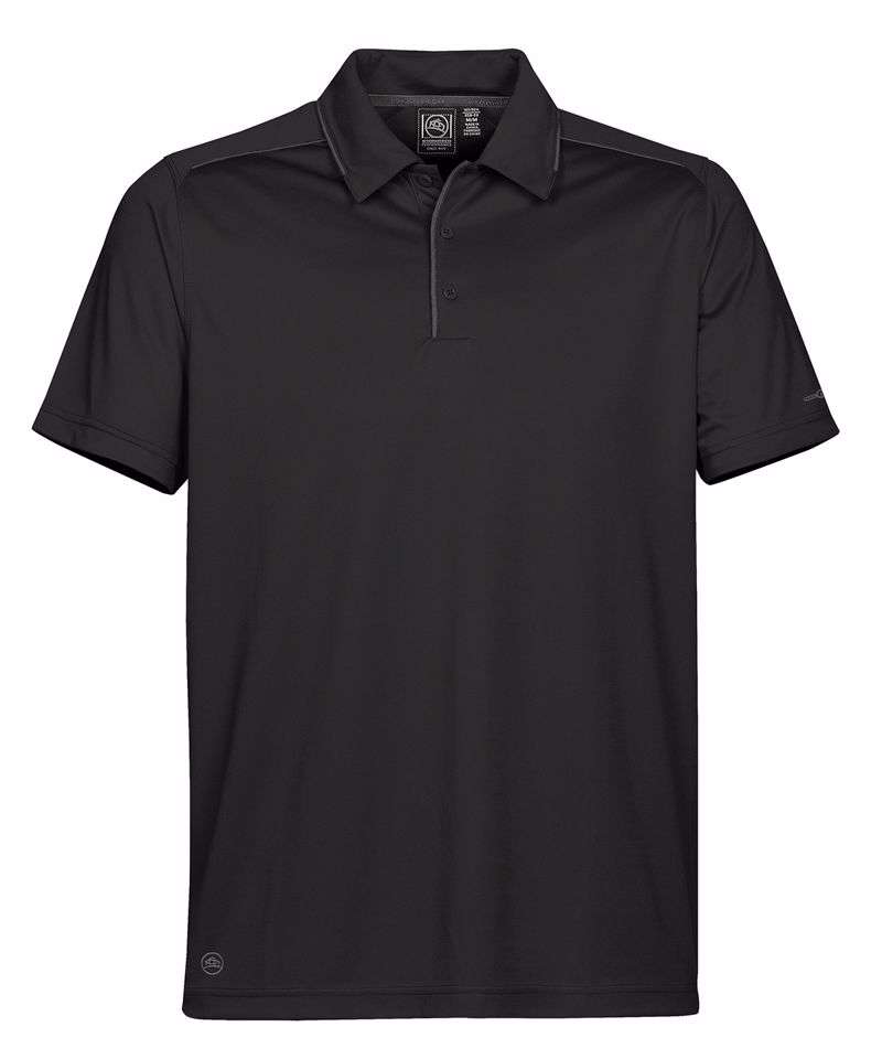 Mositure wicking polo shirt, features a durable self fabric collar, with high contrast trim at the collar and shoulders.