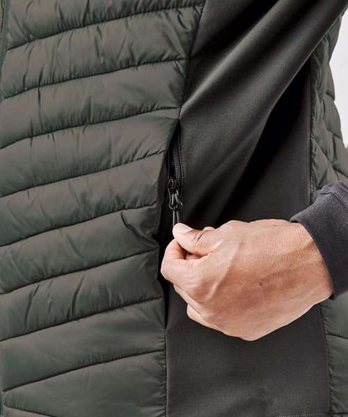 Pure Earth by STORMTECH™. Durable, PFC-free, water-repellent finish. Combination of broken fibre fill and polyfill. Adjustable hem. Zipped hand pockets with brushed tricot. Decoration access. STORMTECH Thermolex™ high loft synthetic down. High-performance windproof outer shell. Contrast single-layer stretch side panels. Partial elasticised armhole trim. Internal mesh stash pockets.