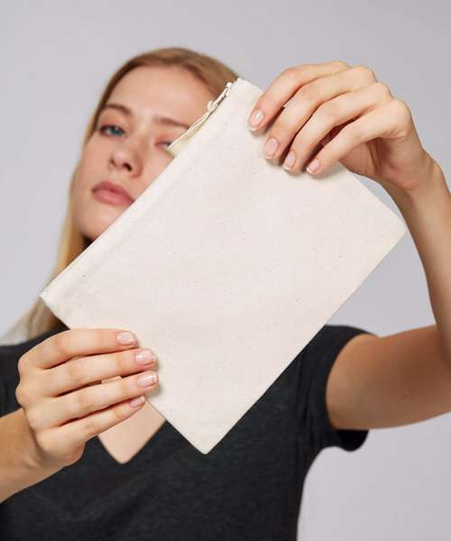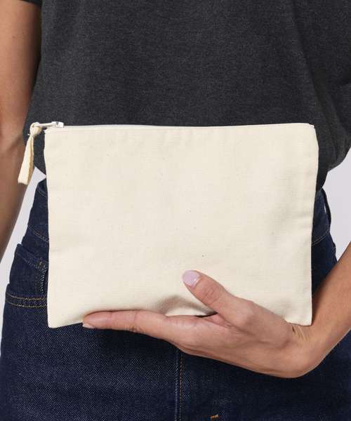 The woven pencil case is cut in premium 300gsm 80% reclaimed cotton, 20% recycled polyester with clean finishes.