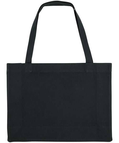 Top edge double folded for strength and clean finish. Side soufflet. Long handles with reinforced cross stitch. Single edge stitch on all seams in matching body colour thread. Unisex. 80% recycled cotton, 20% recycled polyester. Canvas.
