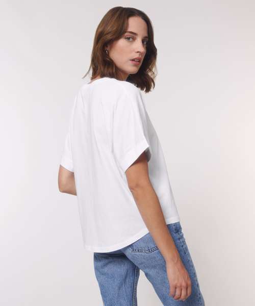 Oversized women’s t-shirt with dolman sleeve, inspired by the 1990s oversize trend.