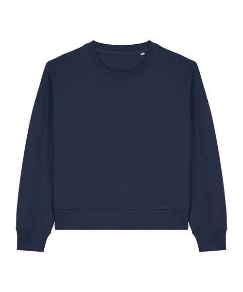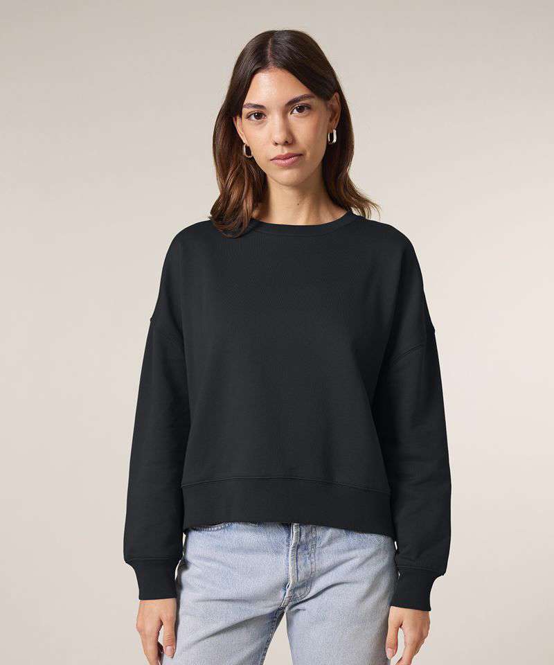 Premium women’s crew neck sweatshirt in brushed 100% organic cotton, 300gsm. Dropped shoulders, adjusted length. Broad colour choice. Excellent printability.