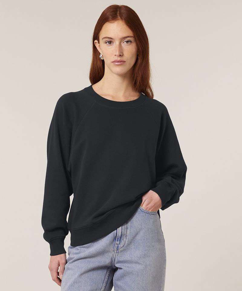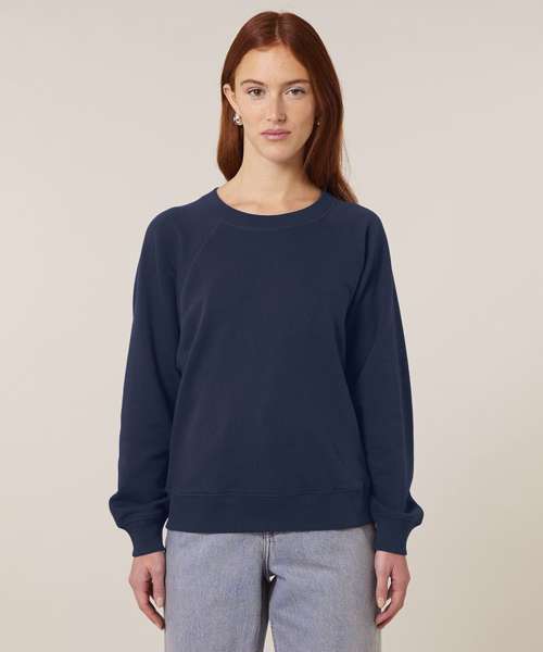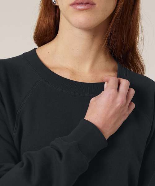 Premium women’s raglan crew neck sweatshirt in 100% organic cotton. 300gsm French terry. Excellent printability. Aligns with iconic mid-light styles.