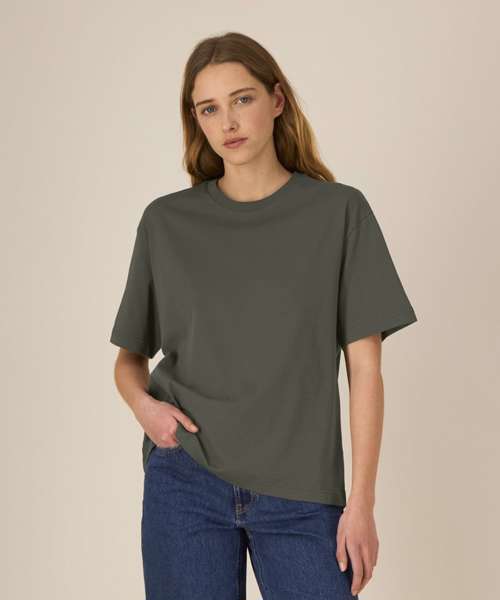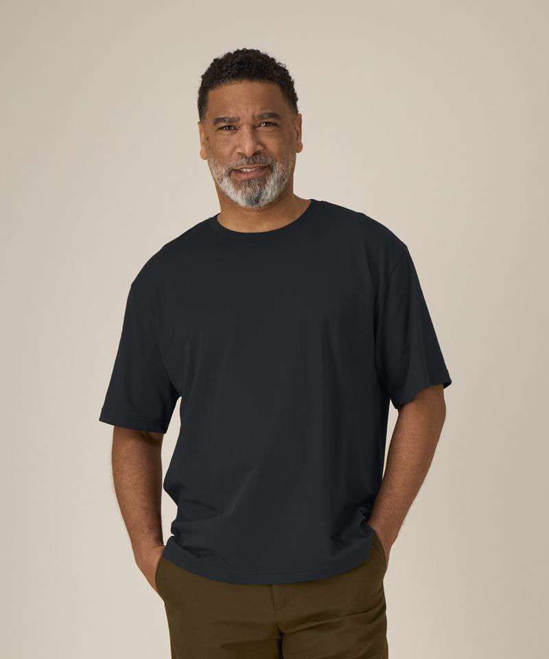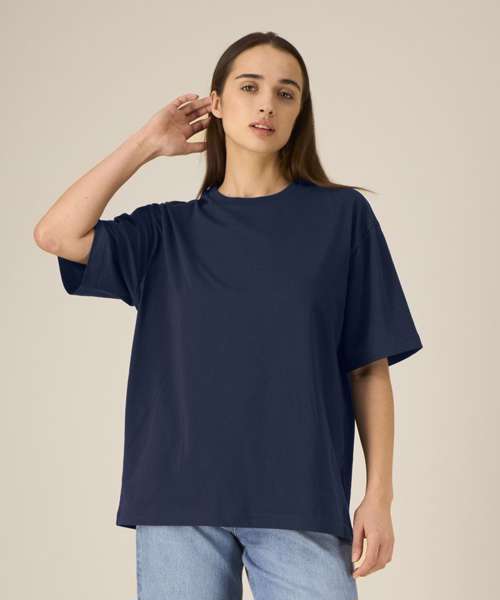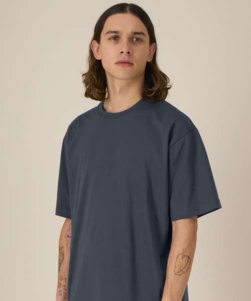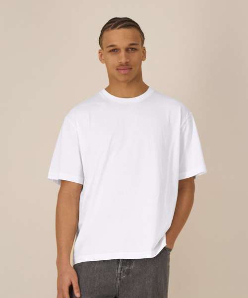 Iconic mid-light unisex t-shirt. Relaxed fit. Set-in sleeve. 1x1 rib at neck collar. Inside back neck tape in self-fabric. Twin-needle topstitch at sleeve cuff and hem.