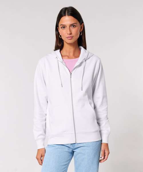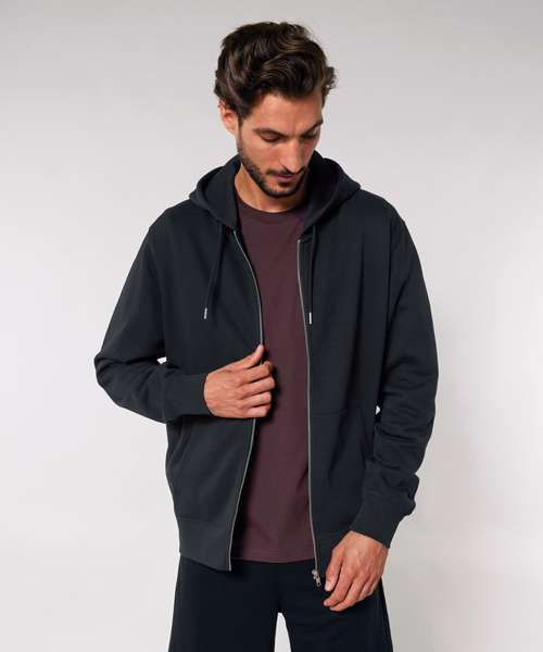 The modernised unisex Cultivator 2.0 iconic zip-thru hoodie sweatshirt – now in 100% organic cotton, with a new modern medium fit and wider rib at the hem and sleeve cuffs, as well as improved drawcord quality and closed metal drawcord endings. It also offers better decoration results than before, plus a deep and vibrant colour palette to choose from.