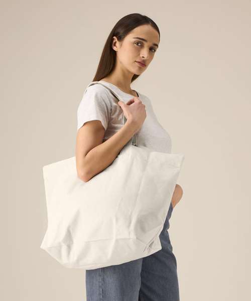 This blank woven shopping bag has a large print area which is ideal for customisation. Short and long handles offer versatility. Made from 100% recycled cotton.
