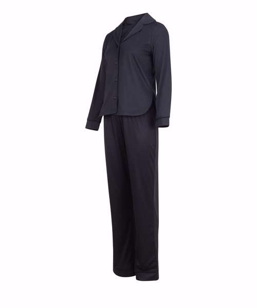 Slip into pure comfort with the beautifully crafted Supersoft pyjamas designed for those who appreciate a little luxury in their loungewear. Made from 100% recycled polyester this set not only feels incredible against the skin – it’s also kind to the planet. The long-sleeve shirt top features a classic lapel collar with elegant pearlised buttons running down the front enhanced by refined contrast piping along the collar cuffs and hem for a timeless finish. A grown-on button stand adds a seamless tailored touch while the back neck tape ensures durability and extra comfort. The matching trousers are all about relaxed ease with an elasticated waistband and adjustable drawcord that offer the perfect fit every time. The set is tag-free for easy rebranding and combines elevated styling with everyday comfort making it the ideal addition to any loungewear or sleepwear offering.